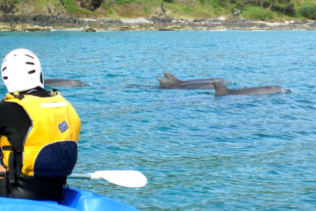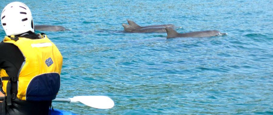 - Ocean kayaking with dolpins in the wild (and sometimes Humpback whales which are migrating to the north)